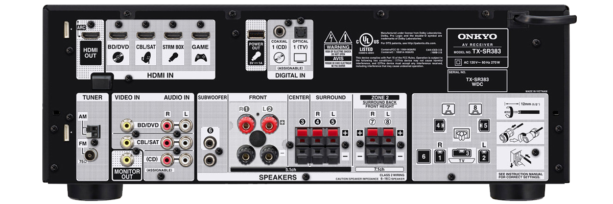 - ✔The manufacturer claims support for CEC in Onkyo TX-SR383 and therefore you can control any HDMI-connected device using one remote control.